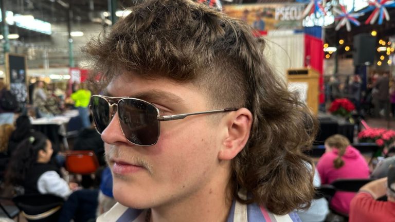 Ben Barley, 7, of Red Lion, Pennsylvania, arrived at the event with his parents two hours ahead of the event wearing a T-shirt featuring his name and the words “MULLET LIFE 6-7,” a nod to both his hairstyle and the bafflingly popular youth catchphrase. He said he’d been working on his mullet for two years.