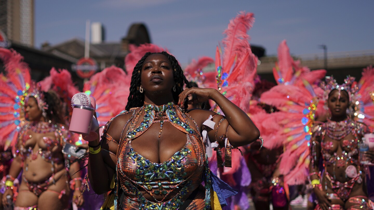 LONDON (AP) — Revellers are parading in colorful costumes through the streets of Notting Hill, in west London, for the annual carnival which started in 1966 and is one of the largest festival celebrations of its kind in Europe celebrating Caribbean culture.
