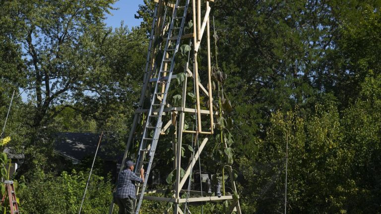 FORT WAYNE, Ind. (AP) — When Alex Babich, 47, stood in his backyard in Fort Wayne, Indiana, craning his neck to look 35 feet into the sky, he wasn’t just staring at a sunflower. He was looking at his roots — and his future legacy.